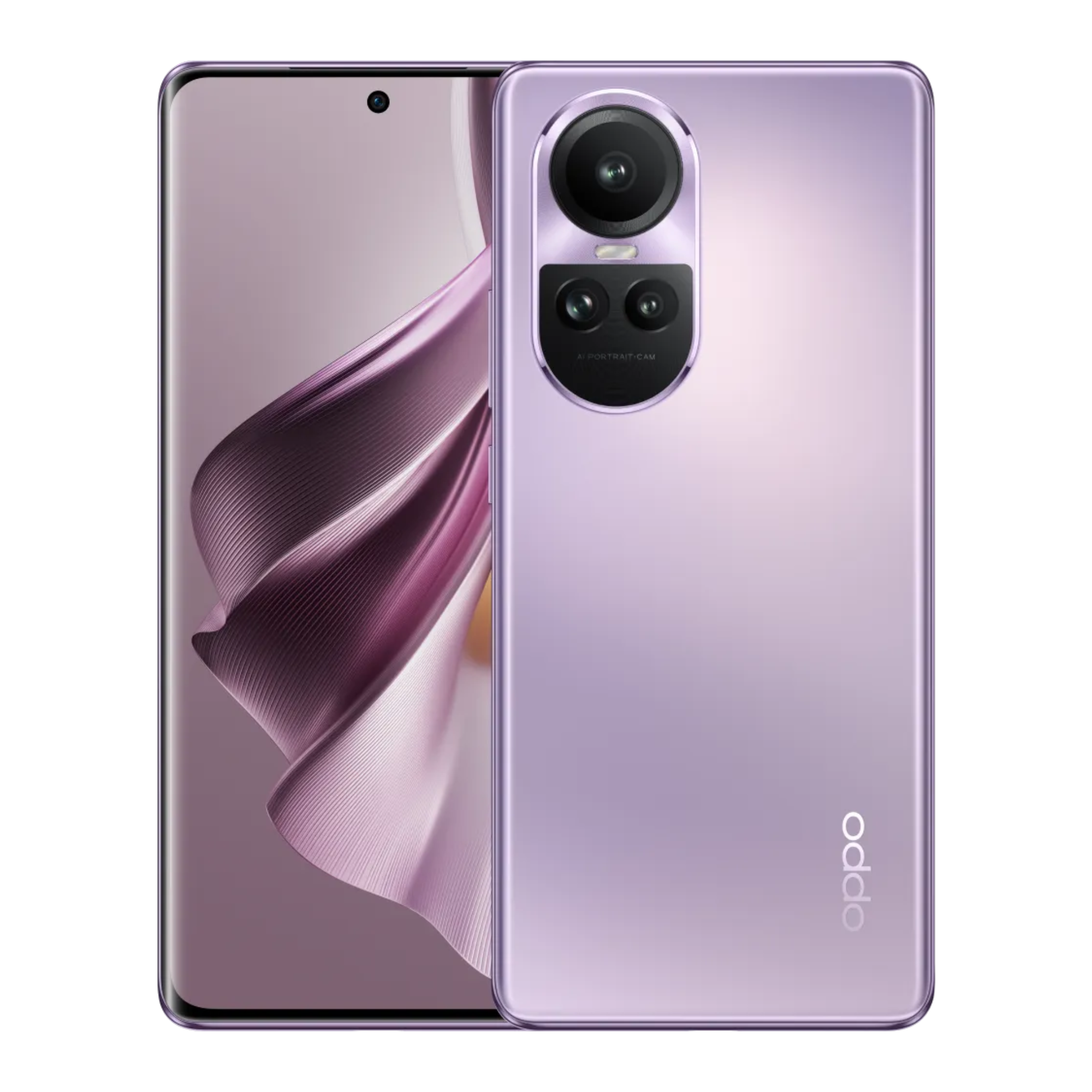 Oppo Reno10 Pro 5G се предлага в двa цвята Сив и Лилав. Той разполага с елегантен, тънък дизайн (едва 7,5 мм) и защита IPX4 (устойчивост на пръски вода). Дисплеят му е 6,7-инчов AMOLED, 430-нитов Full HD дисплей с резолюция 1080x2400 пиксела. Смартфонът предлага съотношение 20:9 и честота на опресняване 90Hz. Готина екстра са RGB пръстеновидните светлини, разположени около камерите, които имат за цел да известяват.